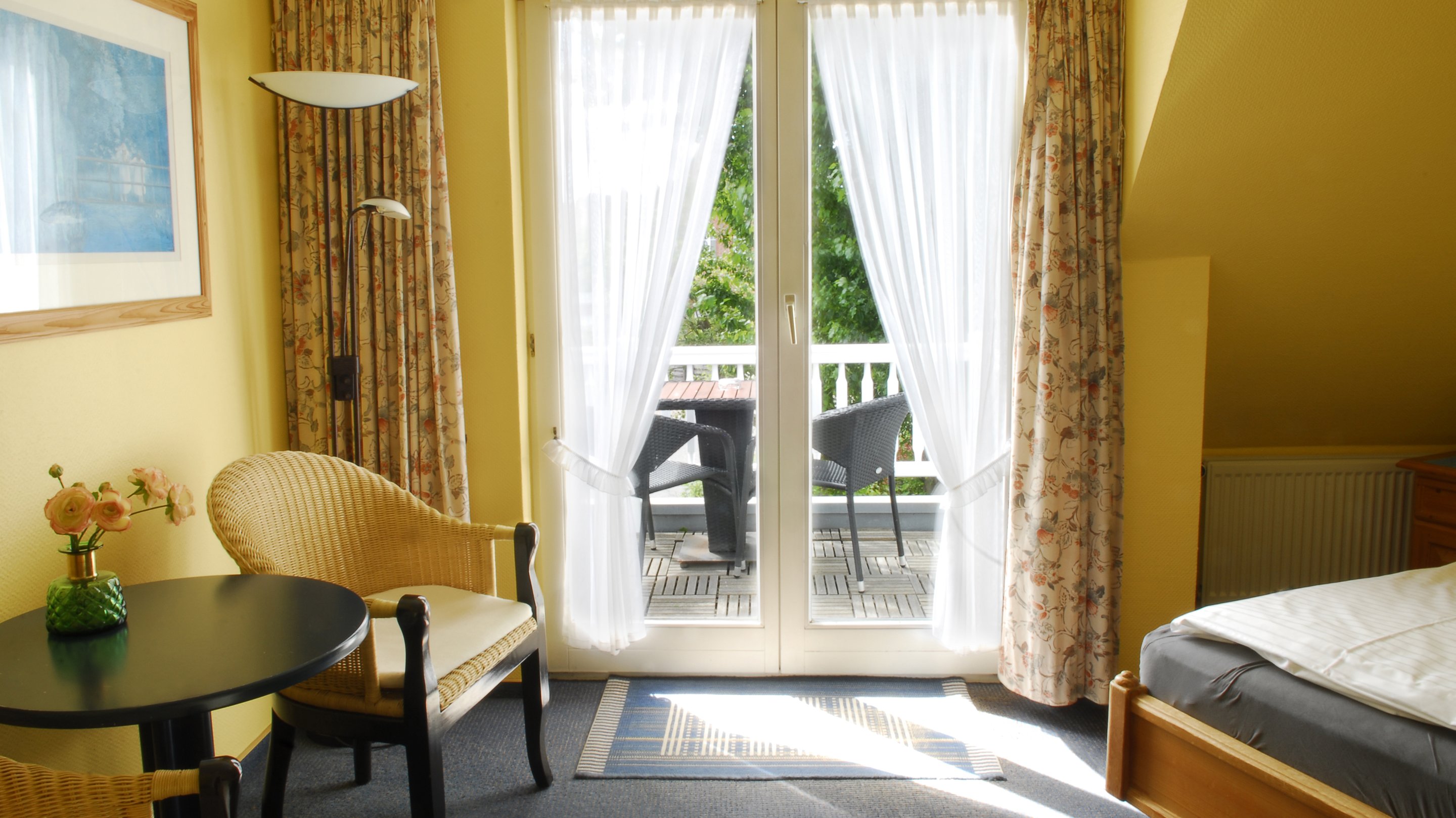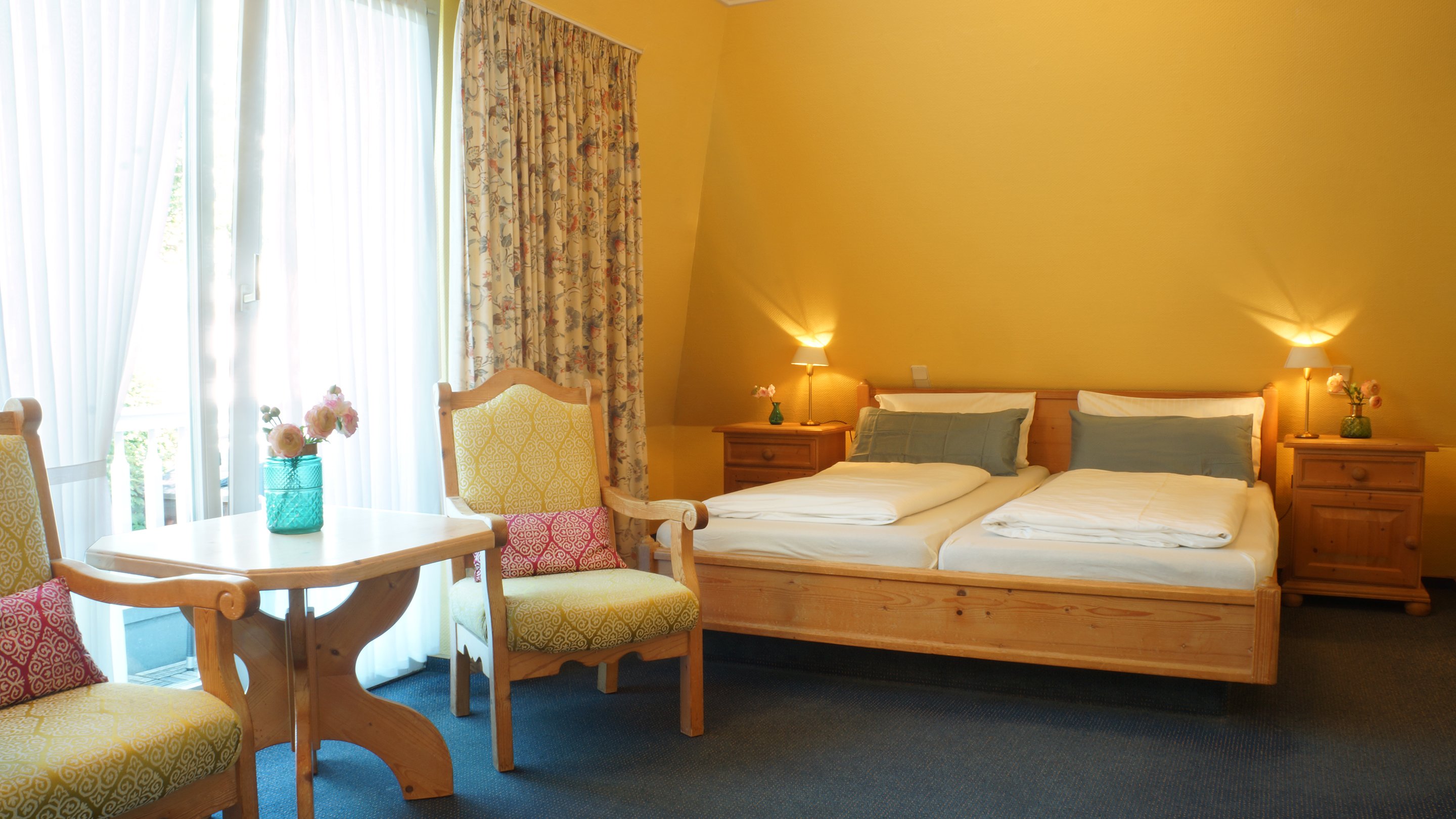 Unsere Klassik Doppelzimmer verfügen entweder über einen Balkon oder eine Terrasse und sind gemütlich im klassischen Stil eingerichtet.